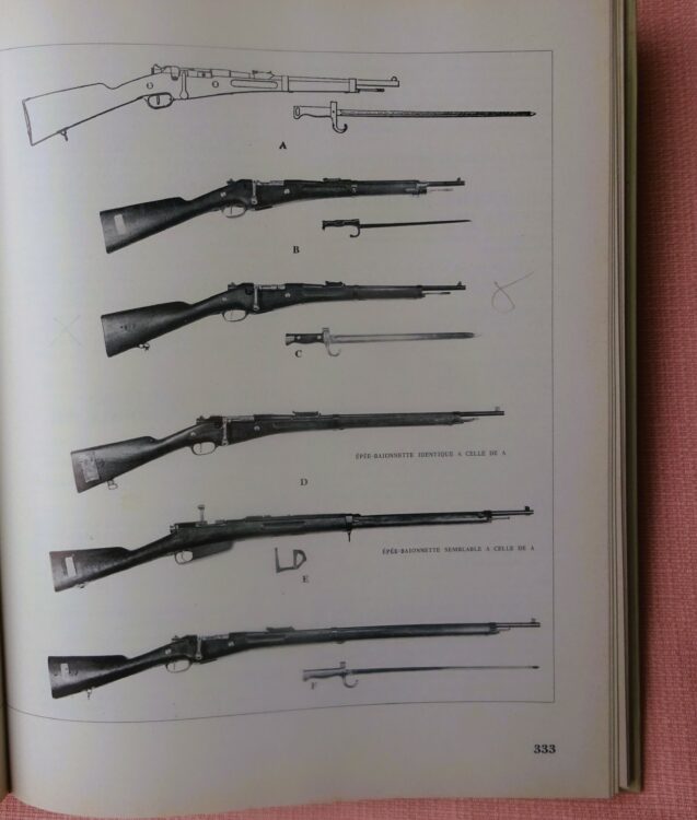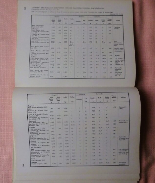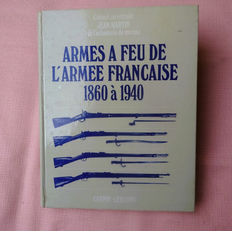 Livre intitulé LES ARMES A FEU DE L’ARMEE FRANCAISE de 1860 à 1940, 460 pages en noir et blanc retraçant toutes les armes règlementaires françaises ainsi que toutes les armes achetées à l’étranger, écrit par le Colonel Jean MARTIN de l’infanterie de marine, édition datée de 1974 (épuisée), format 21,5 x 27,5 cm.
